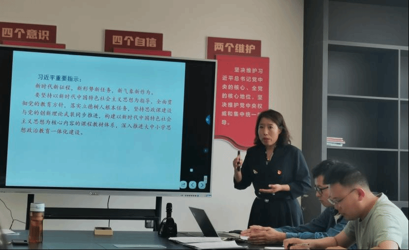 宣传委员庞璐围绕“教什么”“怎么教”“谁来教”分享了自己对思政课建设的指导思想、使命任务、内容体系、目标要求等的理解,并表示作为一名思政课教师要把争做大先生,教好大学问,更好地担当起员工健康成长的指导着和引路人的责任,真正践行为党育人、为国育才的责任和使命。