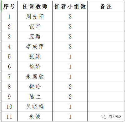 由任课教师按照任课班级数的比例推荐课堂讲课比赛中表现优秀的小组参加全校的讲课比赛,推荐名额见下表: