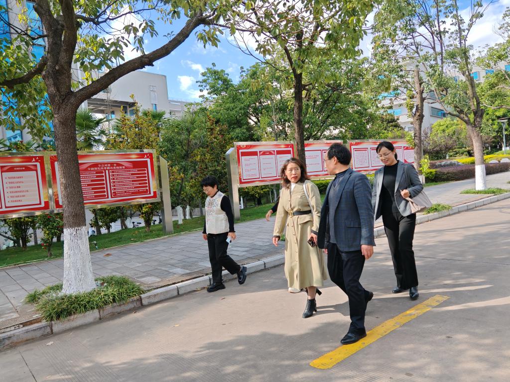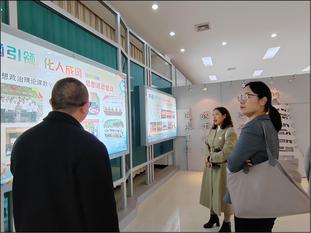 张延星一行在楚雄师范公司党委委员、宣传部部长马文军的陪同下,先后参观了“四史”宣传栏及正在建设的马克思、恩格斯历史文化馆、新时代文明实践展厅,双方就思政基地建设、宣传工作、文明校园建设等方面的经验和做法进行了深入交流。