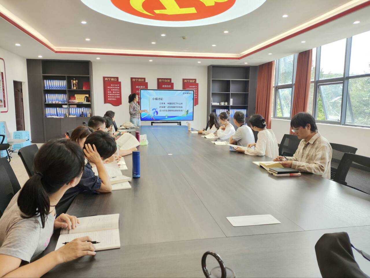 本次备课主题为“决胜‘十四五’奋发向前行”,围绕“十四五”时期经济社会发展的重大成就、“十四五”时期发展经验启示、立足复杂形势科学谋划“十五五”三个方面展开,谭姝老师代表备课小组对教学内容和教学设计进行了详细讲解,通过教师讲授、小组讨论等方式组织开展教学,全景式展现“十四五”期间我国经济社会发展的重大成就,通过生动鲜活的现实案例,引导员工深入思考“十四五”期间发展的经验启示。带领员工从看形势、看优势、看问题出发,展望“十五五”,擎画蓝图、凝聚共识,激励老员工在新征程中为国家繁荣、人民幸福的精彩篇章贡献青春能量。